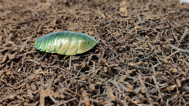 Schabe. Besonders die adulti glänzen metallisch grün und sind ein Augenmagnet in jedem Interieur.